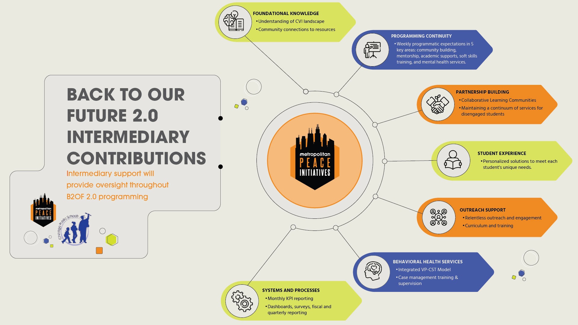 Metropolitan Peace Initiatives will serve as the Intermediary for Back to Our Future 2.0, providing support and oversight to the following community-based organizations:
